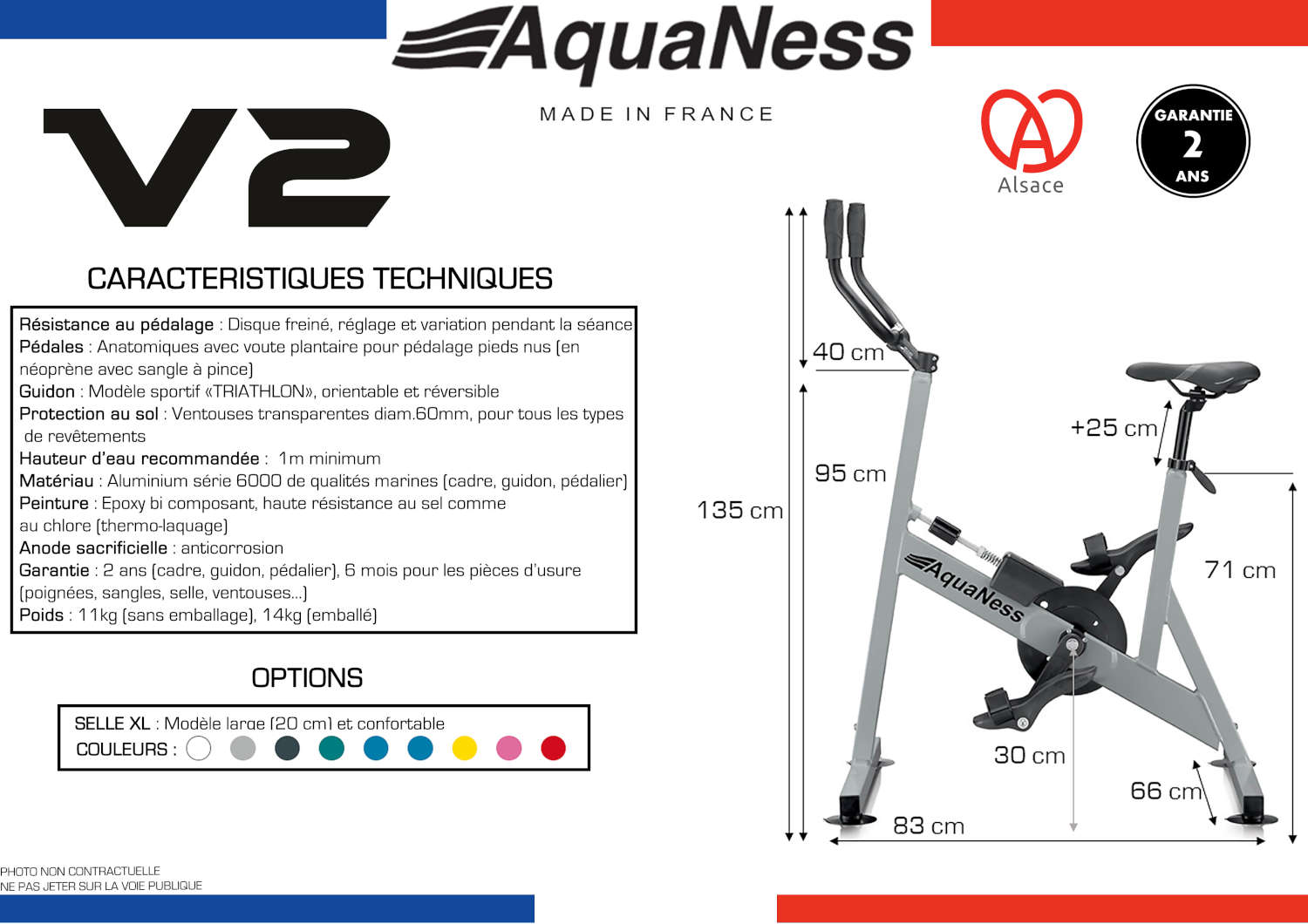 - Conception technique simple, fiable et très robuste, l’aquaness v2 est un vélo sportif tout en restant léger